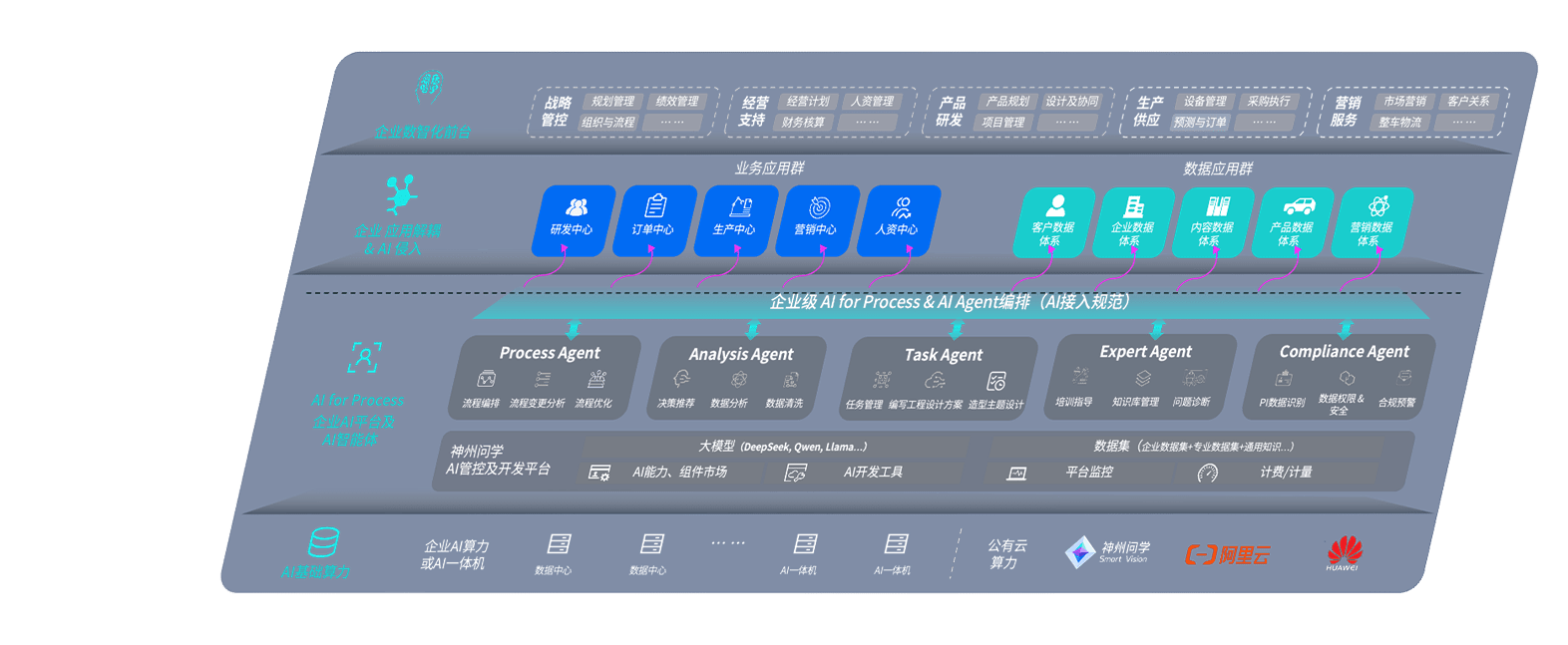 z6尊龙问学智车解决方案是一套基于AI技术的汽车行业智能化系统,,覆盖从底层算力到顶层AI应用的全栈方案。。。。方案由算力层、、、模型层和应用层组成:算力层,,,方案支持多种一体机配置,,,,具备云端灵活部署、、、多云适配以及动态优化计算资源的能力;模型层,,,z6尊龙问学平台版提供了企业级AI应用一站式构建与管理平台,,,支持基于后训练强化技术的汽车企业专属模型的训练、、、评测和运营;应用层,,,z6尊龙问学DeepSeek版提供包括超级员工、、、智能招采、、、、智能营销、、智能客服、、、、AI for BI等一系列解决方案,,,可助力汽车行业实现数字化转型,,,,让管理更智能、、、、响应更敏捷。。。。