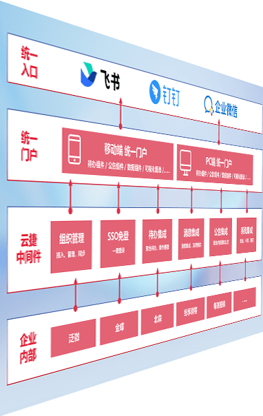 对协作平台提供支持服务,,,,支持企业应用与协作平台对接,,,包含组织同步、、、、消息集成、、、待办集成等。。支持目前主流的协作平台:钉钉、、、企微和飞书。。。。
